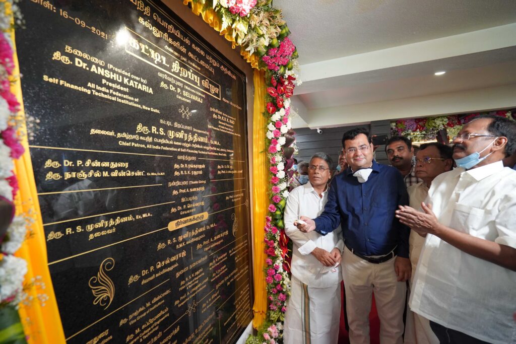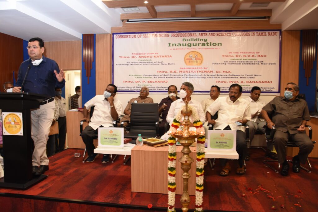The building of Consortium of Self Financing professional Arts & Science Colleges, Tamilnadu was inaugurated by Dr. Anshu Kataria, President, Federation of Self Financing Technical Institution (FSFTI), All India; President, Punjab Unaided Colleges Association (PUCA) & Chairman, Aryans Group of Colleges, Rajpura Near Chandigarh in Chennai.